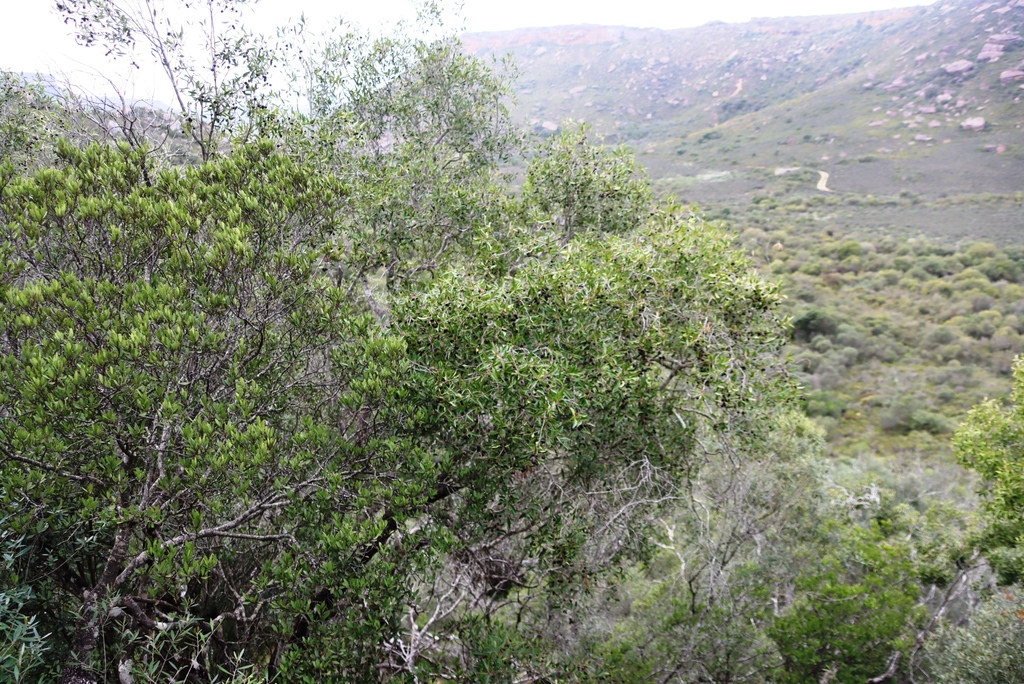 - Mock Olive Phillyrea latifolia Phillyrea has opposite thicker leaves and different fruit (small drupes) but lacks olives’ characteristic gnarled trunk and larger fruit clusters.